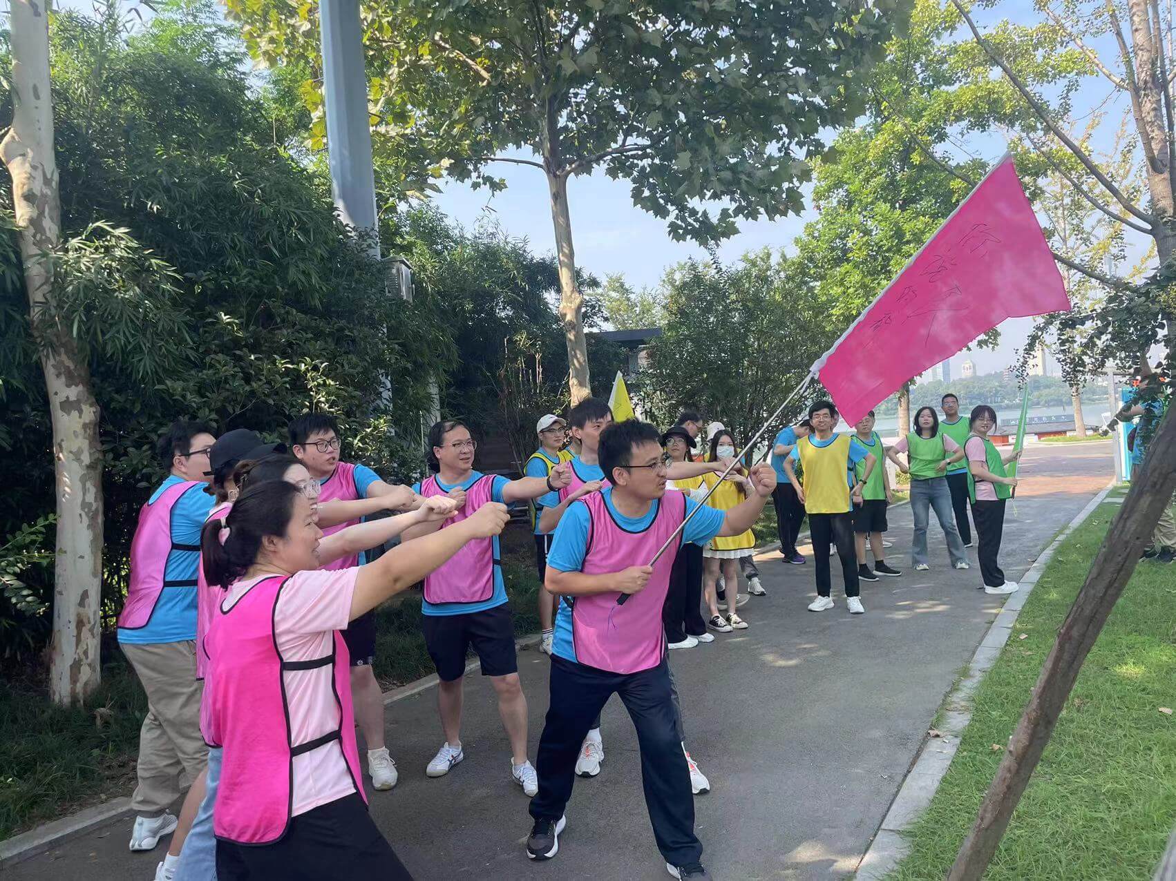 活動分為上午和下午兩個階段,地點分別是玄武湖龍舟基地和世紀緣湖濱花園酒店?;顒右婚_始,首先進行了破冰分組。所有參與活動的新員工們迅速組成了四個團隊,并進行了熱身運動及破冰活動。